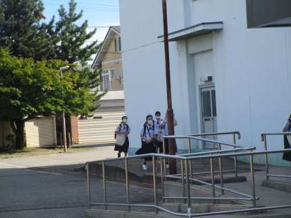 9月5日(月) 台風の影響で暑い朝となりました。風も強いですが、生徒はいつも通り登校していました。