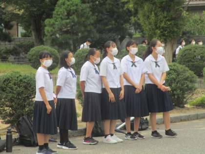 朝のあいさつ運動 男女剣道部 公開日 2022/09/07 更新日 2022/09/07 生徒会 9月7日(水) 今日の朝のあいさつ運動は男女剣道部でした。生徒玄関前でさわやかにあいさつをしてくれました。