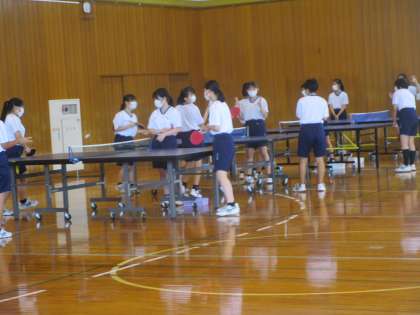 卓球・バドミントンの授業の最後でした。卓球では、5点ゲームで勝敗を競い合いました。
