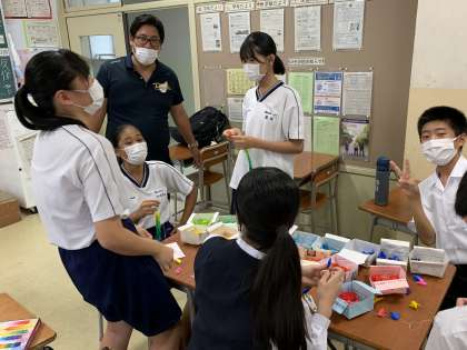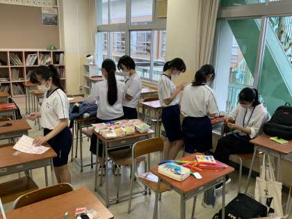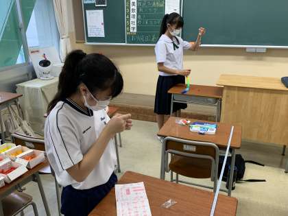 修学旅行に向けて、各学級で折った鶴を千羽鶴に仕上げています。完成まであと少し!