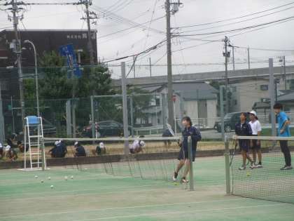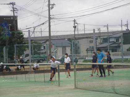 女子ソフトテニス部 公開日 2022/09/09 更新日 2022/09/09 部活動 女子ソフトテニス部も気迫のこもった練習をしていました。男子の顧問の先生も女子の指導をしてくれていました。男子同様、強烈なレシーブをボレーで返球していました。