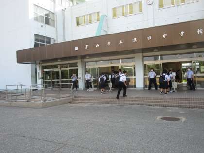 9月11日(月)朝の登校の様子 公開日 2022/09/12 更新日 2022/09/12 学校だより 月曜日の朝、生徒が登校しています。玄関で校長先生はじめ、先生や教育実習の先生が挨拶を交わしています。