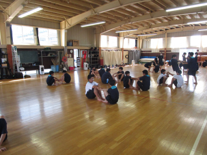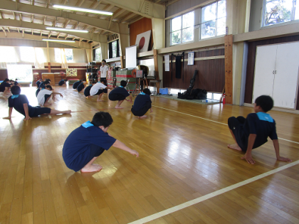 教育実習生が、武道館で「体つくり運動」の授業を行いました。