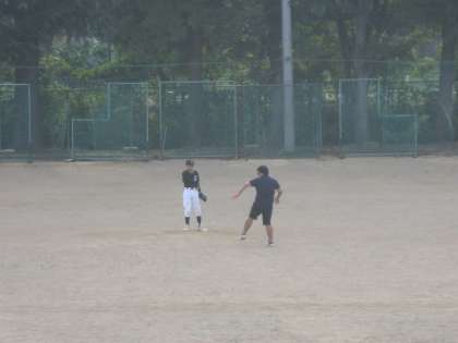 顧問の先生がピッチャーにマンツーマン指導をしていました。