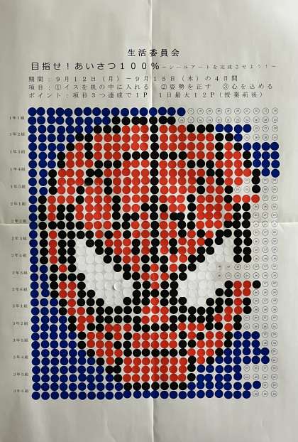 授業のあいさつを見直し、全校でシールアートを完成させましょう!