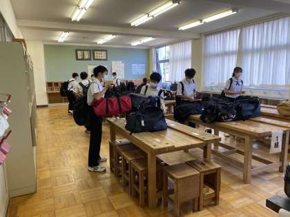 修学旅行 メインバッグをホテルに送ります! 公開日 2022/09/16 更新日 2022/09/16 3学年 来週火曜日から始まる修学旅行に向け、ホテルや二日目以降に利用する荷物が入ったメインバッグを送るため、大きなカバンをみんなで持ってきています。 一足先に大阪で待っていてね!