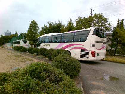 3年生は、本日20日(火)〜22日(木)2泊3日の関西方面への修学旅行を行います。台風14号の影響を受けて日程の一部を変更し、生徒は10時15分に学校に集合し、10時30分に大阪に向けてバスで無事出発しました。