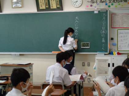 教育実習も残り2日となりました。今日は、大学の先生がお見えになり研究授業をしました。