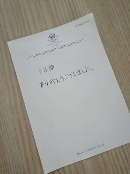 3学年修学旅行3日目スタート 公開日 2022/09/22 更新日 2022/09/22 3学年 おはようございます。大阪は雲空です。 部屋点検を済ませ、朝食会場に来ました。 3組女子の部屋に、素敵なメモがありました。朝からまたうるうるしました。