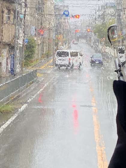 1コースはまず、池田市のカップヌードルミュージアムに行きます。予想外の雨降りです。