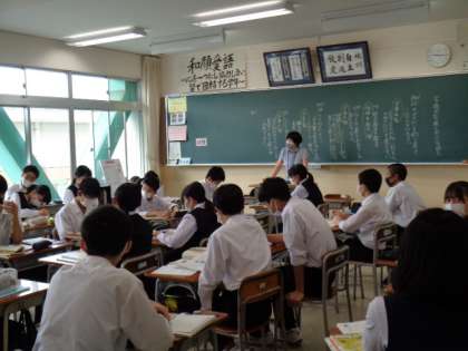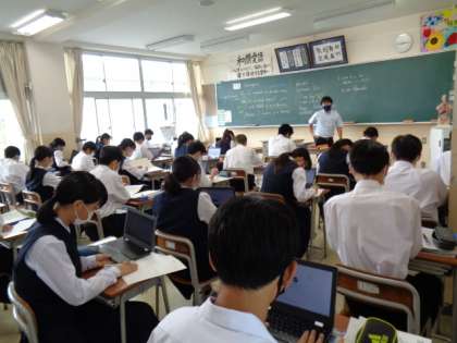 2学年の英語、道徳の授業です。道徳では、机の位置を動かして話しやすくしています。