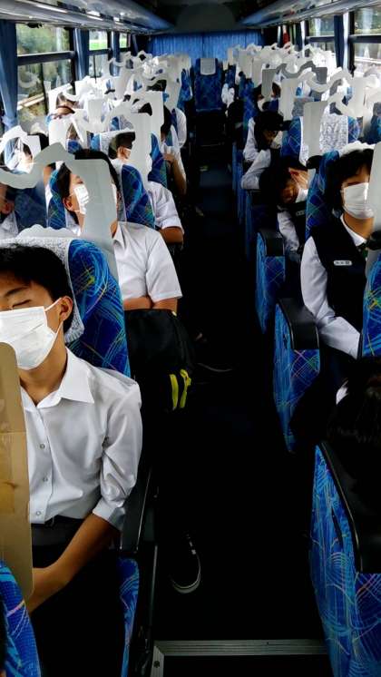 3学年修学旅行3日目 コース別学習終了 公開日 2022/09/22 更新日 2022/09/22 3学年 6コースとも昼食を終え、多賀SAに向かっています。 疲れ切った様子のバスもあります。 14時30分頃に多賀SAで全コースが合流し、クラス別に乗り替えて学校へ向かいます。 このまま順調に進めば、学校到着は当初予定の18時30分より少し早まる可能性があります。 車で迎えに来られる際は、武道館横やグラウンド周辺にバスが入りますので、駐車を避けてくださいますようお願いします。