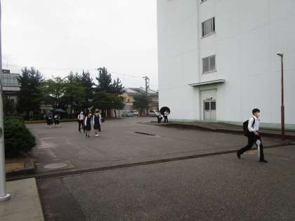 小雨の中の登校 公開日 2022/09/23 更新日 2022/09/23 学校だより 修学旅行を終えた3年生も少し疲れがあるようですが登校していました。本日は、統一学校公開日、あいにくの雨のようですが、お待ちしております。気を付けてお越しください。