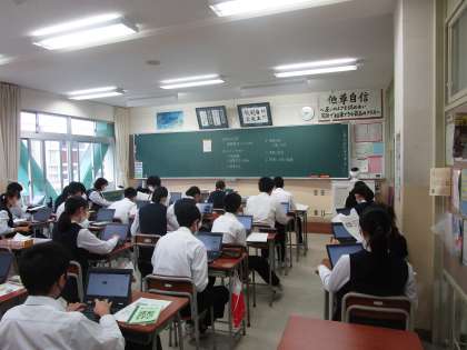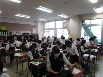 修学旅行を終えた3年生は各クラスでクロムブックを駆使して事後学習をしていました。2泊3日の思い出を振り返り、まとめていました。