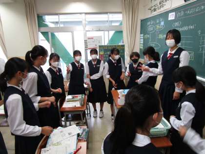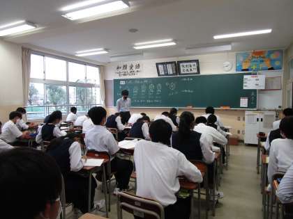 1組数学は、内角の和を考える学習をしていました。 2組理科は、反射が起こるまでの時間を実感する学習をしていました。