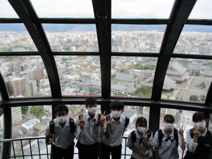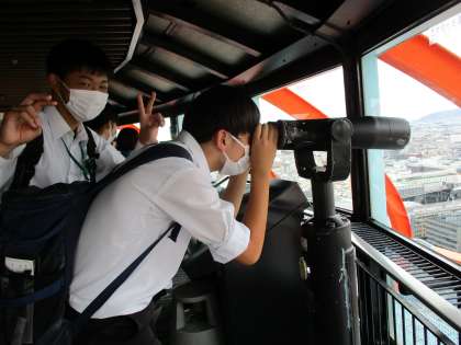 タワーから京都の街を一望しました。 道が碁盤の目になっています。