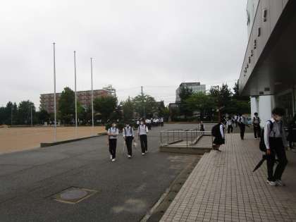 朝の登校の様子 公開日 2022/09/28 更新日 2022/09/28 学校だより 9月28日(水) 朝の登校の様子です。雨もあがり、曇り空の登校です。念のため、傘を持ってきている生徒も多かったです。