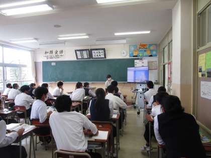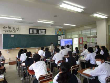 2年1組 社会 公開日 2022/09/28 更新日 2022/09/28 2学年 2年1組の社会は画面にいろいろな写真が映し出されてどこの何か答えていました。難しい写真もあり、先生からの説明に興味深そうには説明を聞いていました。