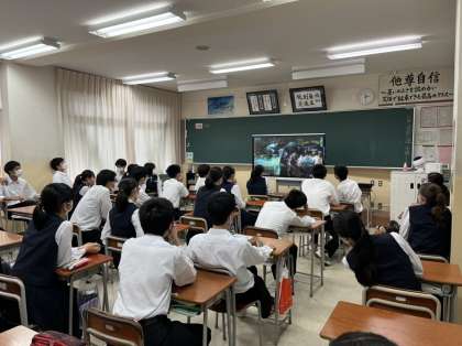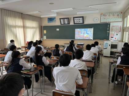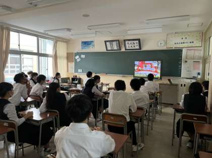 修学旅行フォトムービー視聴 公開日 2022/09/28 更新日 2022/09/28 3学年 修学旅行の思い出を振り返るフォトムービーを視聴しました。 笑いあり、真剣に見る場面ありです。 良い雰囲気でした。
