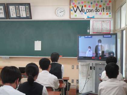 1年生の学年担当で数学の先生、ソフトボール部の顧問をしていただいた先生とサニー級B組の担任、ソフトテニス部の顧問をしていただいた先生の離任式をオンラインで行いました。オンラインでしたが最後は、各教室で感謝の気持ちを表す温かい拍手がされました。これまで奥田中学校のために尽力いただき、ありがとうございました。
