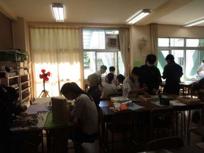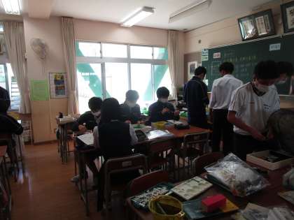 3年5組の美術は、アッサンブラージュの制作をしていました。作品の完成が楽しみです。