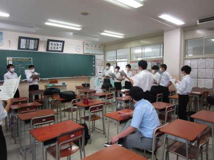 3年合唱 男性パート 公開日 2022/10/04 更新日 2022/10/04 3学年 3年生男子が頑張っています。声変わりした男性の低い響きのある歌声が美しい女性パートとはもり、すばらしいハーモニーとなります。男性パートの響きに期待します。