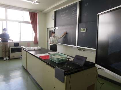 2年2組の理科の授業は富山市教育委員会等の先生方や富山市内の若手の先生方を交えての授業研究会でした。授業を通して生徒にとって分かりやすい授業を行うにはどうすればよいのか多くの先生方が参観して学び合いました。
