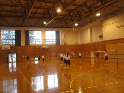 2学年女子保健体育 バレーボール 公開日 2022/10/05 更新日 2022/10/05 2学年 10月5日(水) 2学年女子保健体育は、バレーボールの学習をしています。バドミントンコートで2対2のラリーゲームを楽しんでいます。