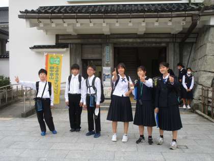 富山城を見学した班の写真です。男女仲よくポーズしてくれました。