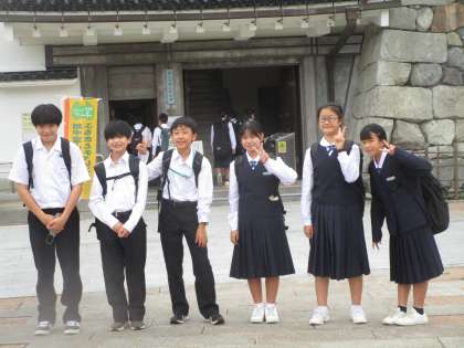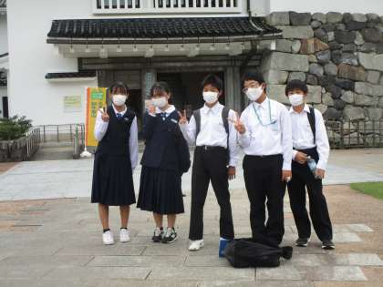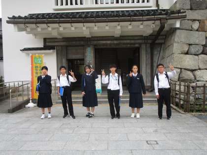 富山城を見学した班です。男女仲よくポーズしてくれました。