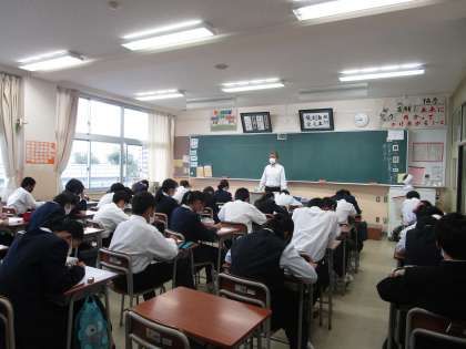 1年2組 1限数学 公開日 2022/10/07 更新日 2022/10/07 1学年 1年生は10月から岩城先生に数学を教わっています。今日は、来週の中間テストに向けた小テストに取り組んでいました。来週もがんばってください。