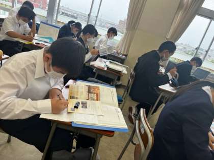 1年4組 校外学習 事後学習 公開日 2022/10/07 更新日 2022/10/07 1学年 昨日の校外学習では、見学やインタビューによって、個人テーマの知見を深めることができました。 今日は、学んで来たことを新聞の形でまとめています。