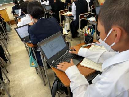 1年5組 国語 公開日 2022/10/07 更新日 2022/10/07 1学年 国語の授業では、案内文の書き方について学習していました。 昨日、学校から配付された合唱コンクールの案内文を見ながら、書き方を確認していました。 Chromebookで、案内文の形式で書く練習をしています。
