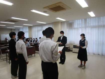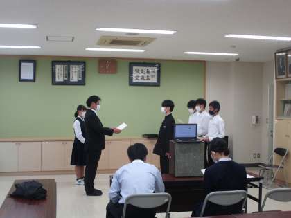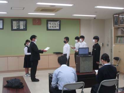10月7日(金)6限 オンラインで後期生徒会役員任命式が行われました。校長先生から任命状が渡されました。