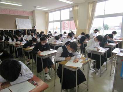 本日より中間考査が始まりました。1年生は最初のテストが英語で、みんながんばっていました。