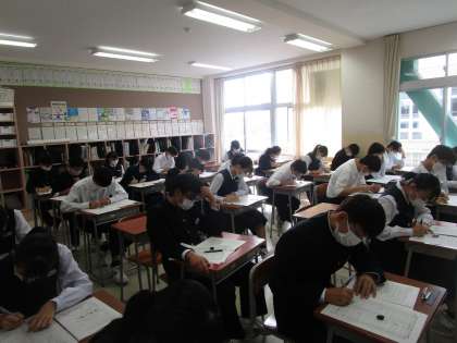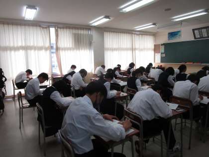 中間考査2日目、3年生1限のテストの様子です。