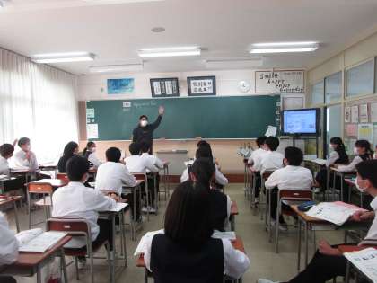 3年2組 英語 公開日 2022/10/13 更新日 2022/10/13 3学年 3年2組の英語は、「ホテルのある場所を知っていますか」との先生の問いかけに生徒が挙手して答えていました。身近な例をあげ、具体的に学習していました。
