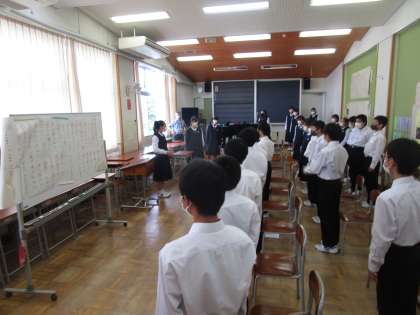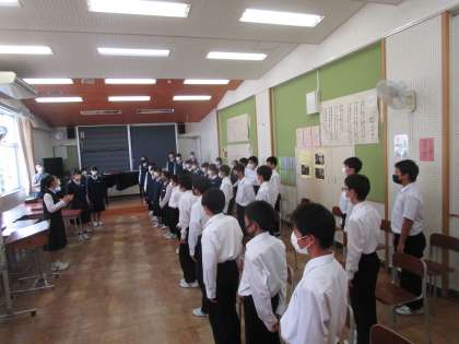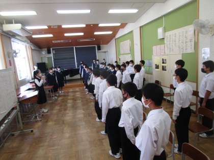 1年1組が第2音楽室で合唱練習をしていました。パートリーダーも前に出て歌っています。