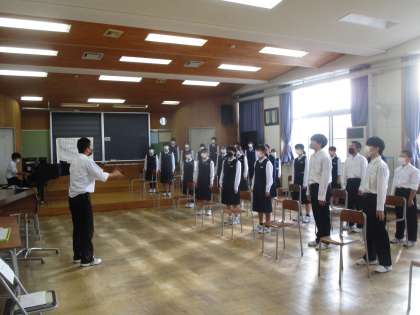 1年3組の合唱練習は第1音楽室での練習でした。クラスの気持ちが1つになり、どんどんレベルアップしています。