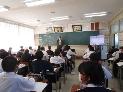 1年5組 家庭 公開日 2022/10/20 更新日 2022/10/20 1学年 1年5組の家庭科は、「食品の安全な扱い方を理解しよう」という課題で学習していました。身近な例で積極的な発言が多く出ていました。