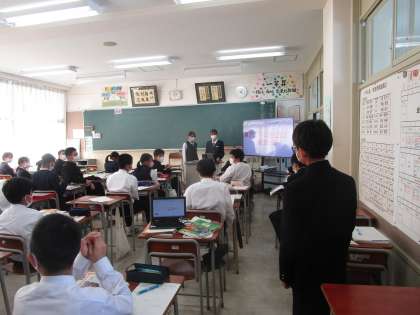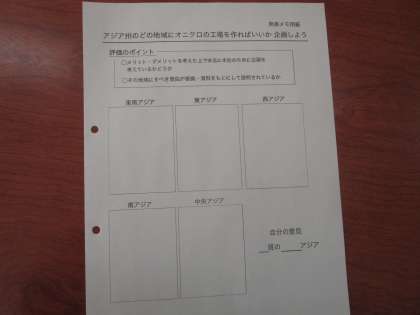 1年4組の社会はアジア州の学習をしていました。各班で考えた提案について質疑応答を受け、学びを深めていました。