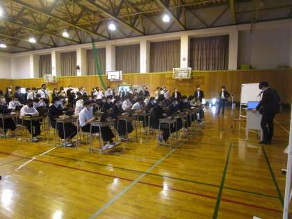 第70回北陸四県数学教育研究会が行われました。体育館で2年1組がたくさんの先生方に参観していただき、授業に臨んでいました。