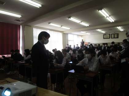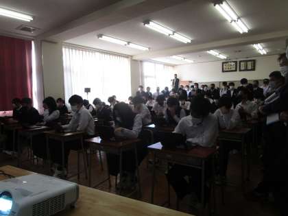 北陸四県数学教育研究大会 3年5組公開授業 公開日 2022/10/21 更新日 2022/10/21 3学年 第70回北陸四県数学研究大会が行われました。技術室で3年5組がたくさんの先生方に参観いただき、授業に臨んでいました。