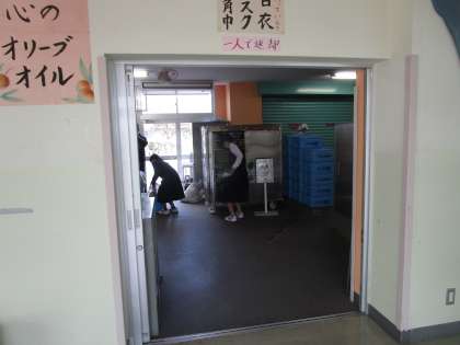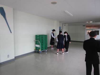 配膳室での後始末を給食委員の生徒が手伝ってくれています。いつもありがとう。