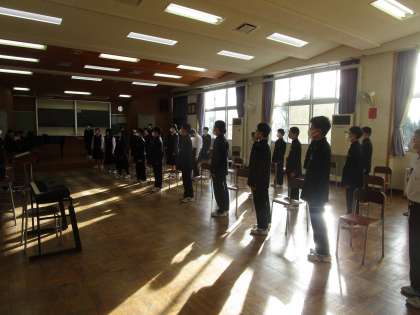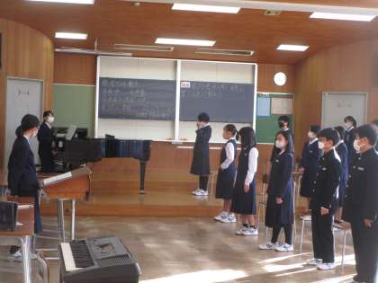 1年4組放課後合唱練習 公開日 2022/10/25 更新日 2022/10/25 1学年 1年4組が第1音楽室で練習していました。指揮者、伴奏者、先生のアドバイスを聞いてよりよいハーモニーを創り上げようと頑張っていました。