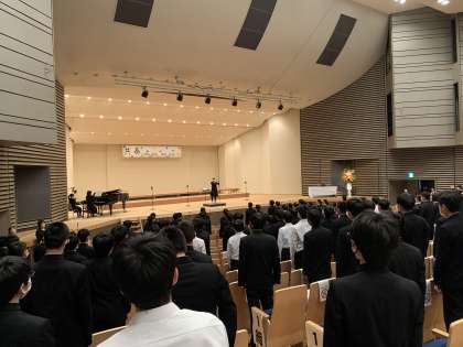 合唱本番に向け、3学年全員で学年合唱の曲を歌いました。 本番に向け準備万端です!