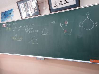 3年6組の理科は、慣性の法則の学習をしていました。グループでだるま落としを理解を深めていました。