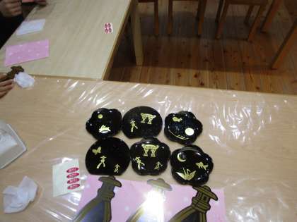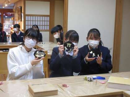 金箔体験 かなざわカタニにて 公開日 2022/11/01 更新日 2022/11/01 2学年 銘々皿に金箔貼りをしました。お店の方の丁寧な説明で各自、オリジナルの作品ができました。達成感でいっぱいでした。