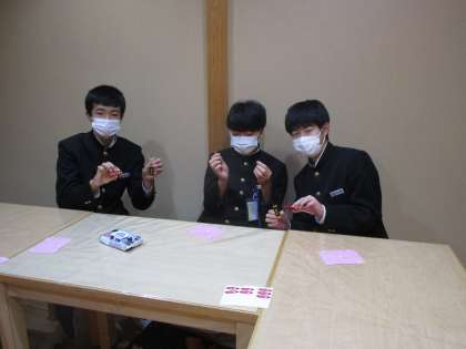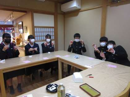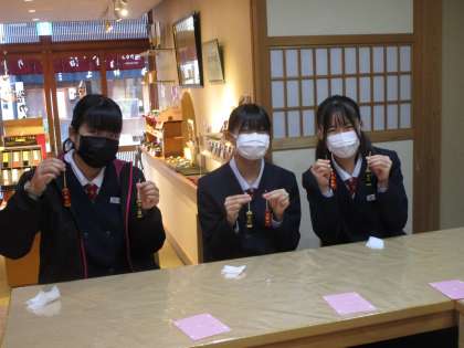 ストラップの金箔貼りをしました。仕上がったストラップで記念写真を撮りました。