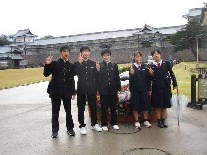 金沢城公園にて記念撮影 公開日 2022/11/01 更新日 2022/11/01 2学年 金沢城公園に集まったグループからグループごとに記念撮影しました。生徒も班ごとにデジカメで撮影しています。後日、見て楽しめることと思います。